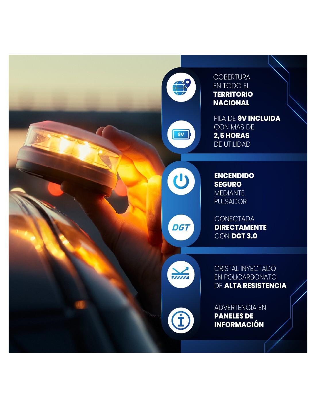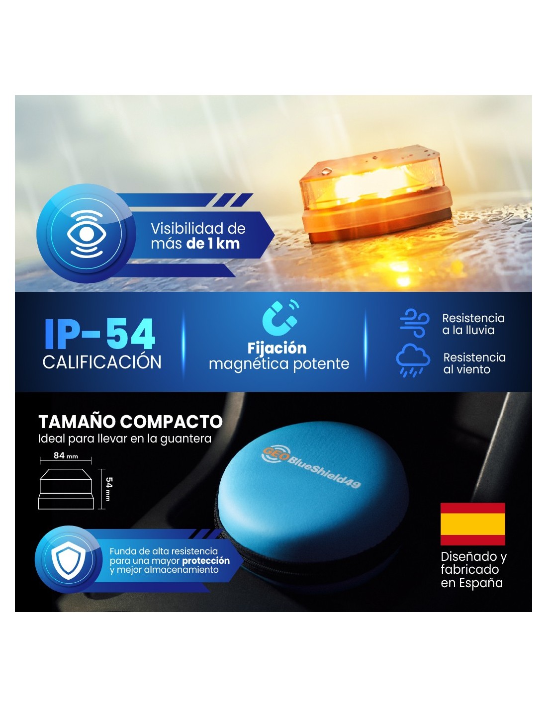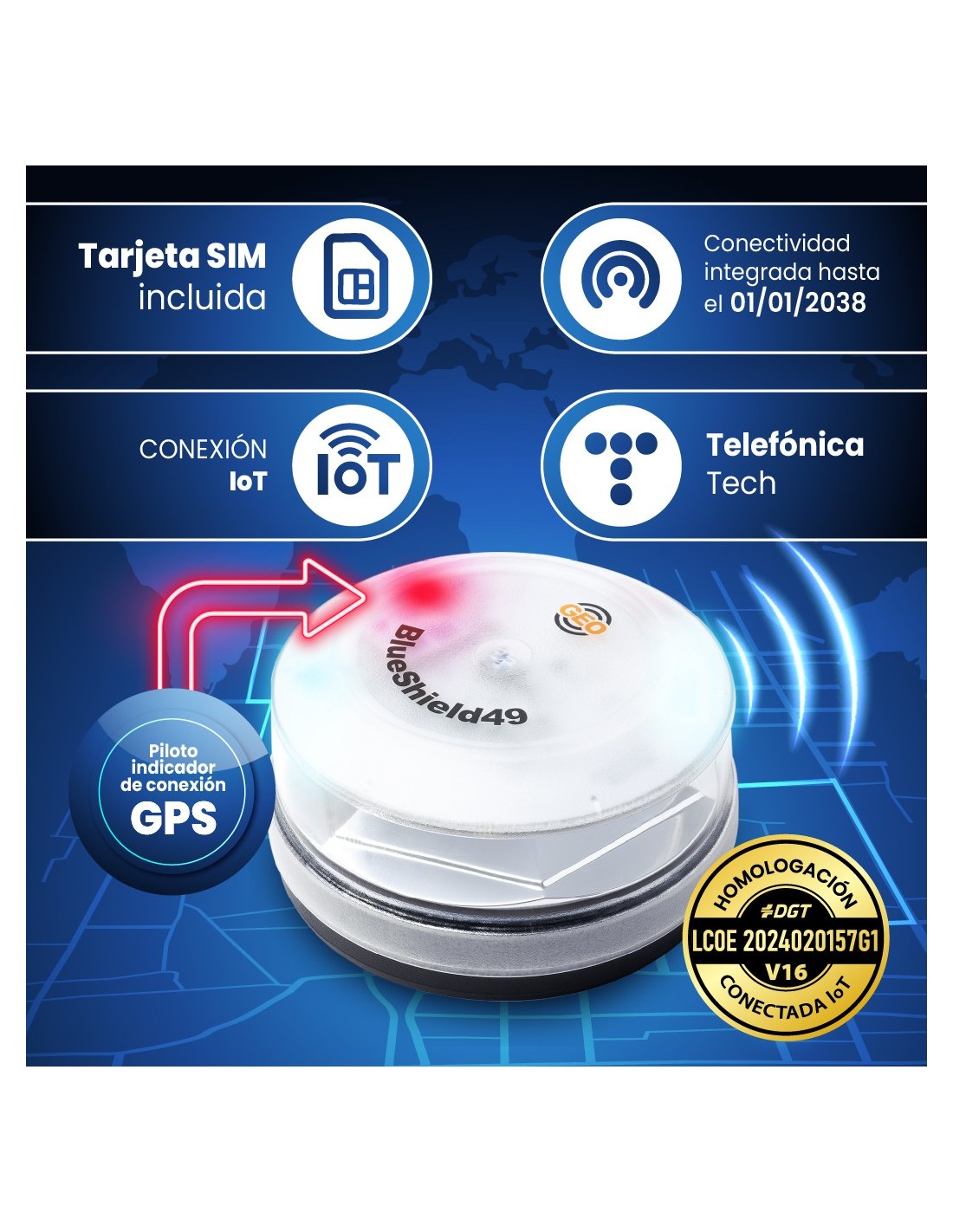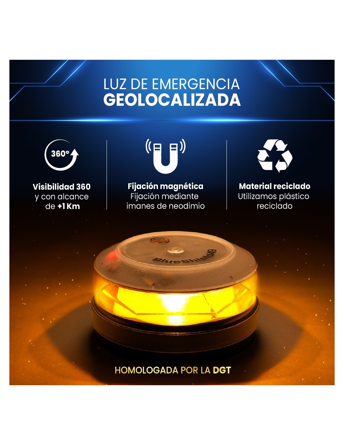 Baliza V16 conectada GeoBlueShield49 – Fabricada en España por Atressa