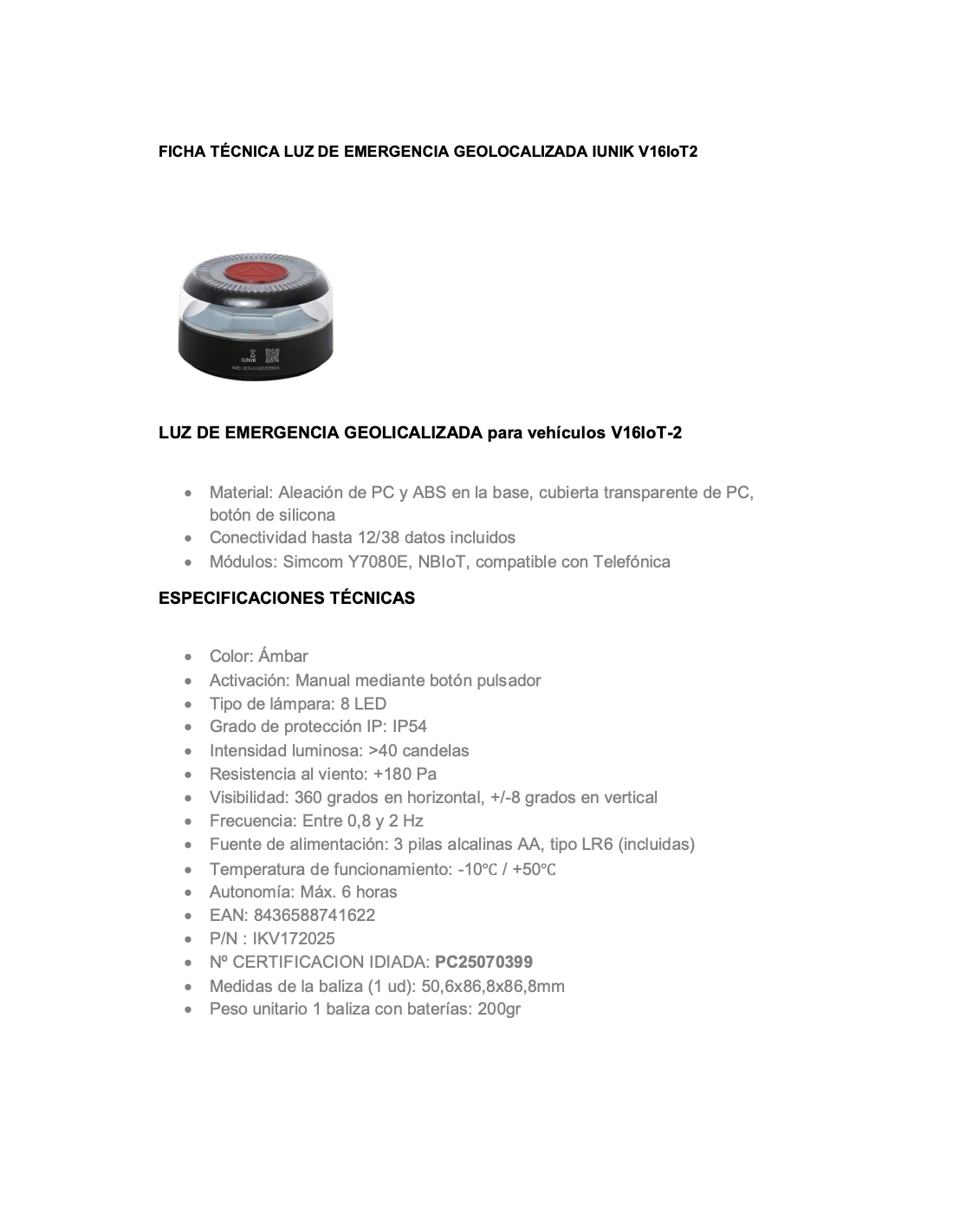 Balizas Lunik V16 IoT2 – Fabricada en China